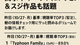 韓国エンタメ情報 【2025年10月28日韓流速報】『Typhoon Family』が高水準キープ!キム・ウビン&スジ作品も話題