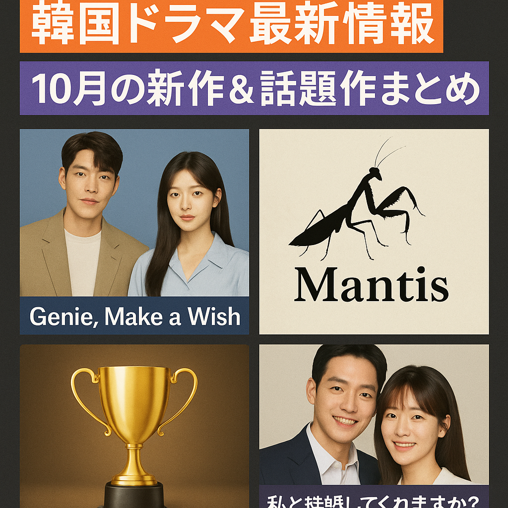 本日ご紹介したのは、Netflix新作『Genie, Make a Wish』、映画スピンオフ『Mantis』、ソウルドラマ賞受賞ニュース、『私と結婚してくれますか?』の配信決定、そして10月公開の映画2本。ドラマ派・映画派どちらの読者にも刺さる内容を意識してまとめました。