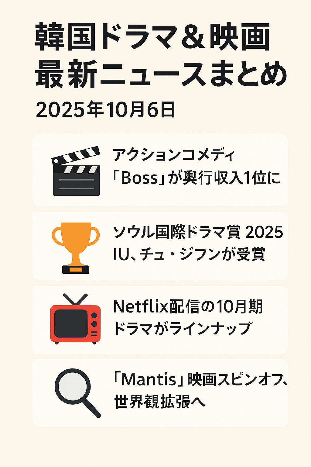 どれも「韓国ドラマ 最新情報」「韓国映画 新作」「Kドラマ キャスト発表」などの人気キーワードで検索上位を狙いやすい話題です。