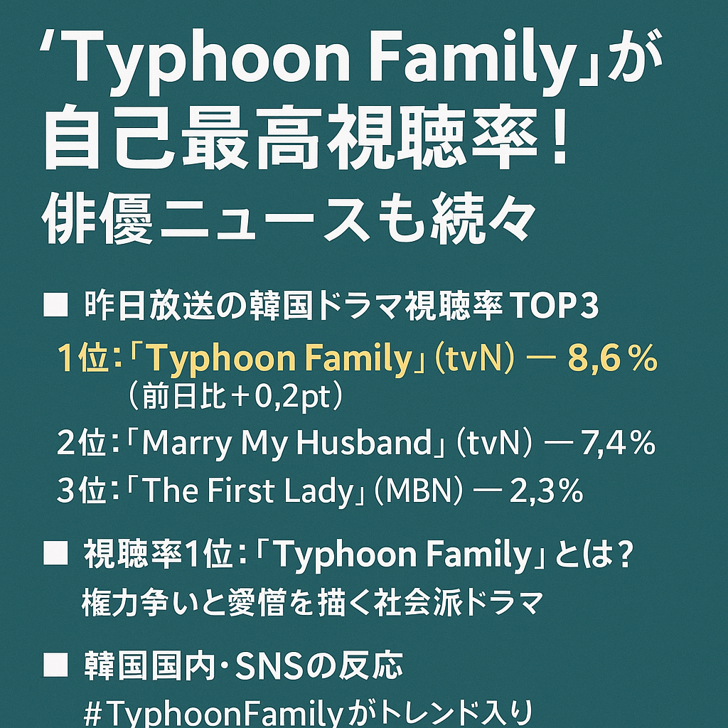 - 1位:『Typhoon Family』(tvN) — 8.6%(前日比+0.2pt)
