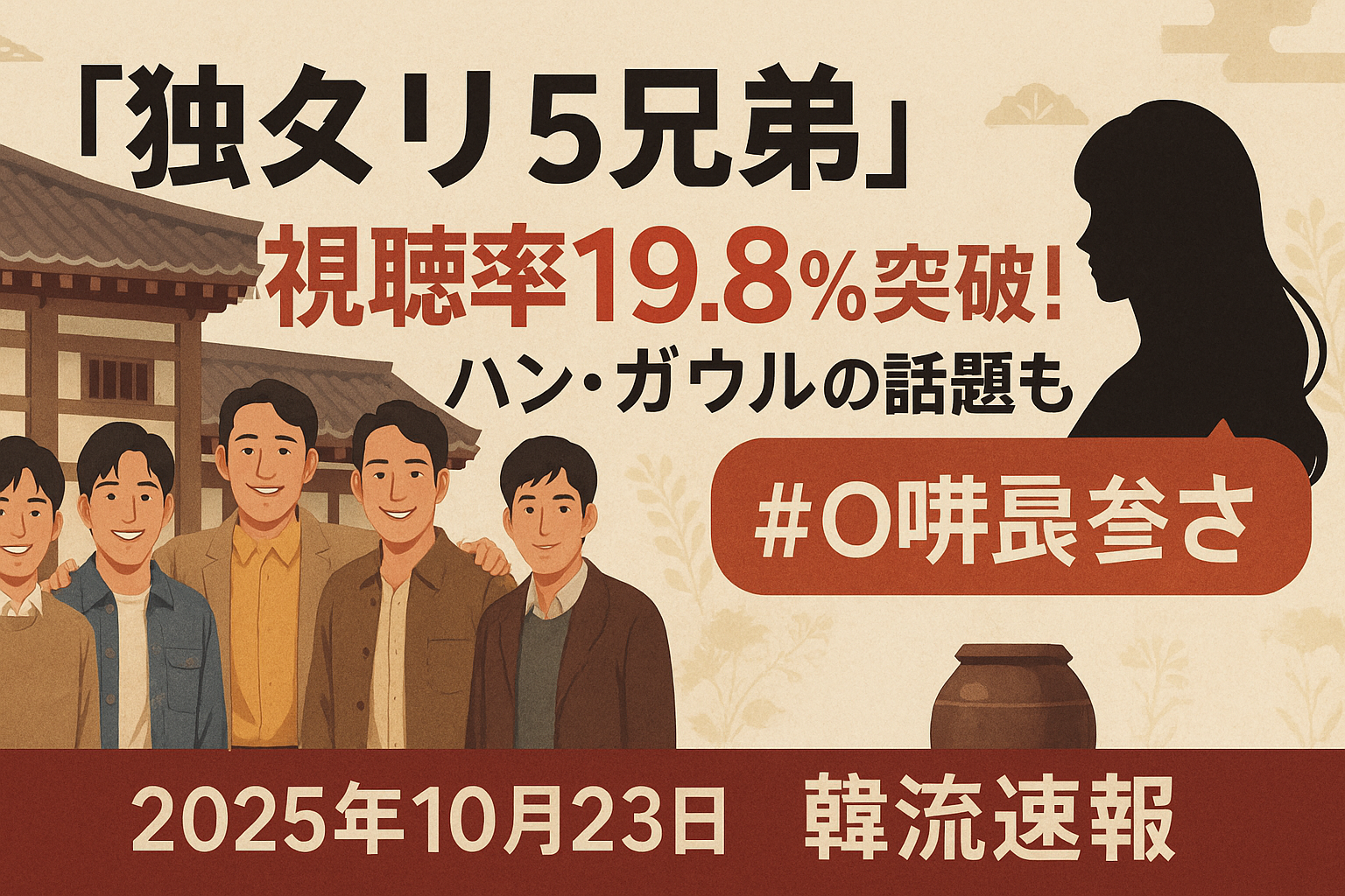 ・「韓国ドラマ 視聴率 最新」のチェックポイントとして、視聴率20%目前の“上位作品”に注目。今回紹介の『독수리 5형제를 부탁해!』は19.8%という好スタートで、今後20%超への期待感も高い。