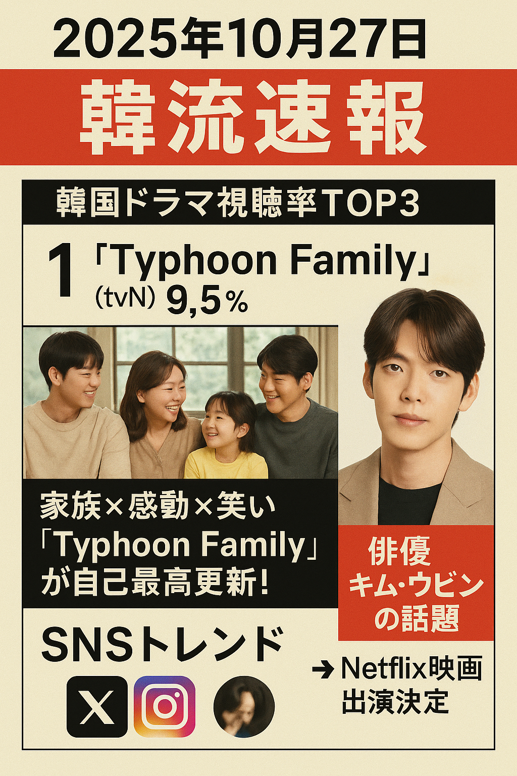 【2025年10月27日韓流速報】『Typhoon Family』が自己最高更新!俳優キム・ウビンの話題も