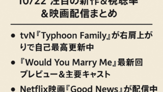韓国エンタメ情報 【2025年10月24日韓流速報】『Typhoon Family』が自己最高更新ペース!俳優ニュースも続々