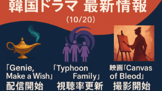 韓国エンタメ情報 韓国ドラマ 最新情報|『Genie, Make a Wish』配信開始/『Typhoon Family』視聴率上昇/映画『Canvas of Blood』撮影開始